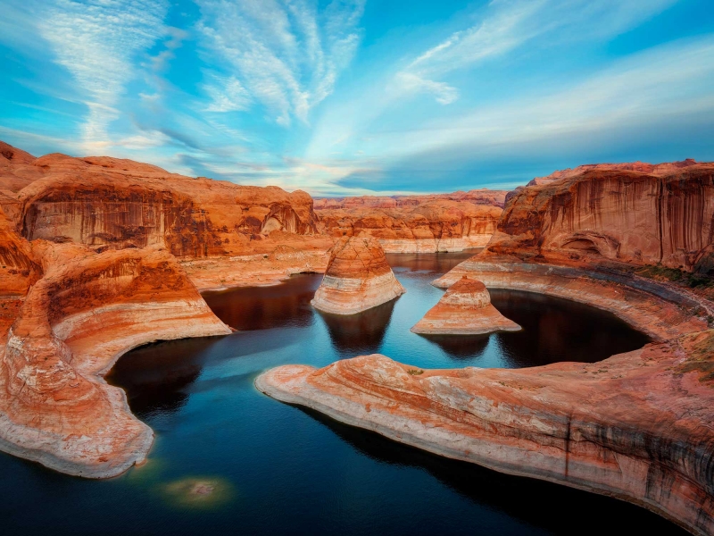 - Canyonlands National Park, plus sauvage et confidentiel, dévoile un labyrinthe de canyons vertigineux, de plateaux entaillés et de mesas monumentales, façonnés par les rivières Colorado et Green. Le secteur de Island in the Sky offre des panoramas vertigineux sur un enchevêtrement de gorges profondes, tandis que The Needles séduit les amateurs de randonnée par ses sentiers isolés et ses paysages grandioses.